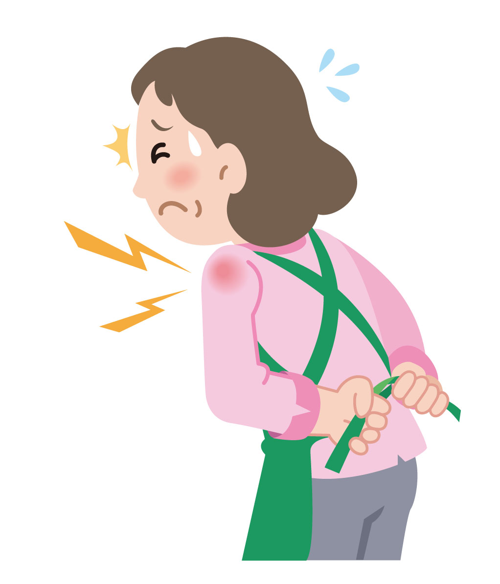 •服の脱ぎ着や髪を結ぶ時に肩に痛みがある